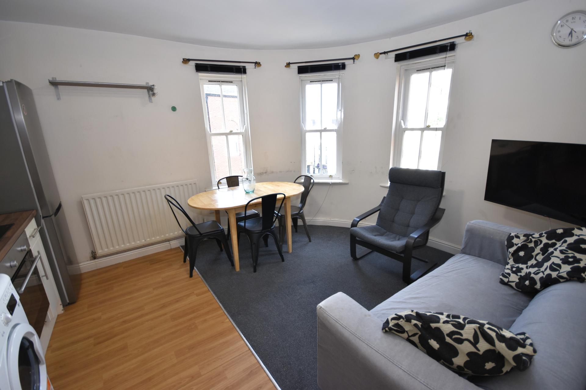 This first floor property comprises; entrance hallway, 4 Double Bedrooms and Shower Room, and impressive, corner position open-plan Living & Dining Area with 40 Inch TV.