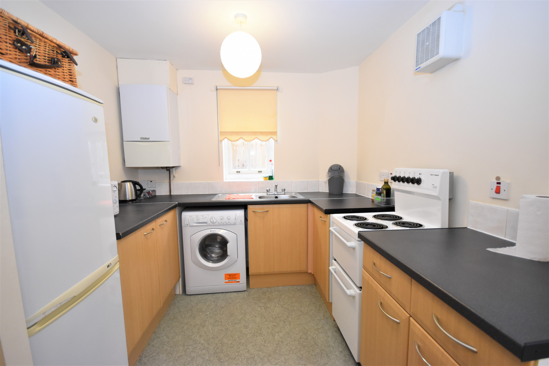 Accessed via private side alleyway, the floorplan comprises; Entrance Hallway, leading to open-plan Living Room & Kitchen, Bathroom with Shower and 2 good sized Bedrooms.